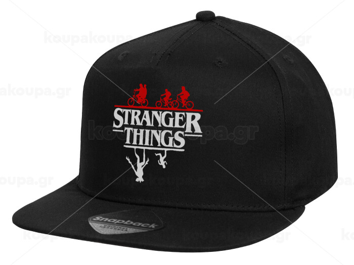 Stranger Things upside down, Καπέλο παιδικό Flat Snapback, Μαύρο (100% ΒΑΜΒΑΚΕΡΟ, ΠΑΙΔΙΚΟ, UNISEX, ONE SIZE)