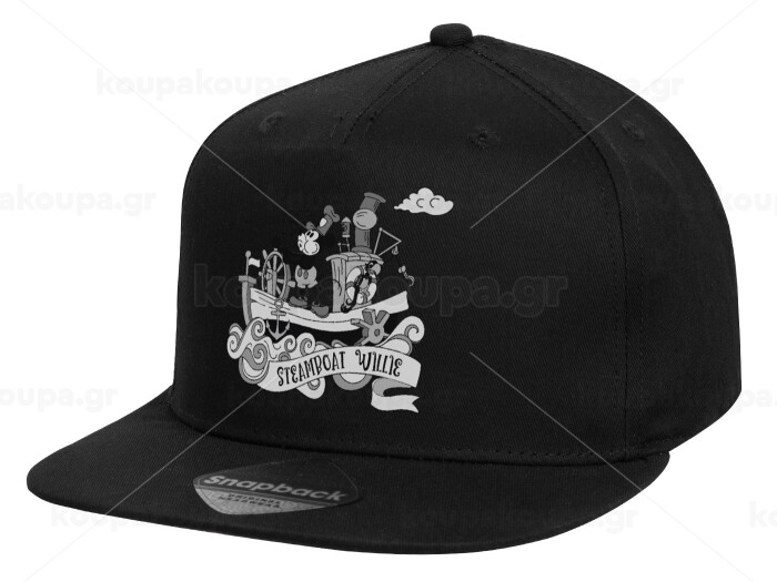 Mickey steamboat, Καπέλο παιδικό Flat Snapback, Μαύρο (100% ΒΑΜΒΑΚΕΡΟ, ΠΑΙΔΙΚΟ, UNISEX, ONE SIZE)