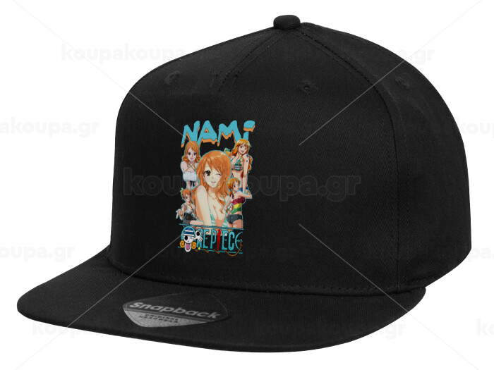 Nami One Piece, Καπέλο παιδικό Flat Snapback, Μαύρο (100% ΒΑΜΒΑΚΕΡΟ, ΠΑΙΔΙΚΟ, UNISEX, ONE SIZE)