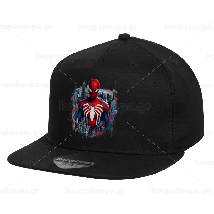 Spiderman City, Καπέλο παιδικό Flat Snapback, Μαύρο (100% ΒΑΜΒΑΚΕΡΟ, ΠΑΙΔΙΚΟ, UNISEX, ONE SIZE)