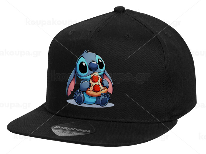 Stitch Pizza, Καπέλο παιδικό Flat Snapback, Μαύρο (100% ΒΑΜΒΑΚΕΡΟ, ΠΑΙΔΙΚΟ, UNISEX, ONE SIZE)