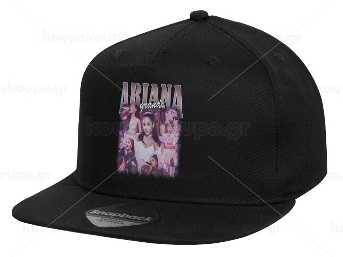Ariana Grande, Καπέλο παιδικό Flat Snapback, Μαύρο (100% ΒΑΜΒΑΚΕΡΟ, ΠΑΙΔΙΚΟ, UNISEX, ONE SIZE)