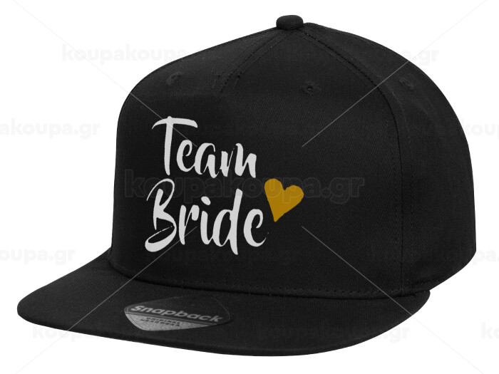 Team Bride, Καπέλο παιδικό Flat Snapback, Μαύρο (100% ΒΑΜΒΑΚΕΡΟ, ΠΑΙΔΙΚΟ, UNISEX, ONE SIZE)