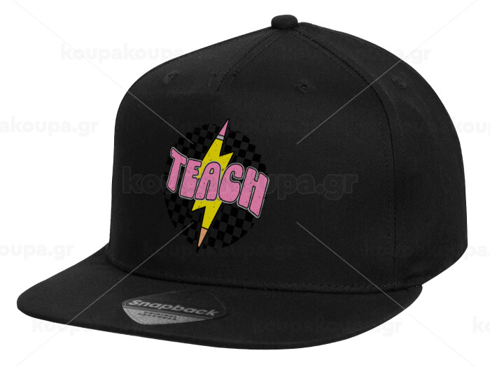 Teach, Καπέλο παιδικό Flat Snapback, Μαύρο (100% ΒΑΜΒΑΚΕΡΟ, ΠΑΙΔΙΚΟ, UNISEX, ONE SIZE)