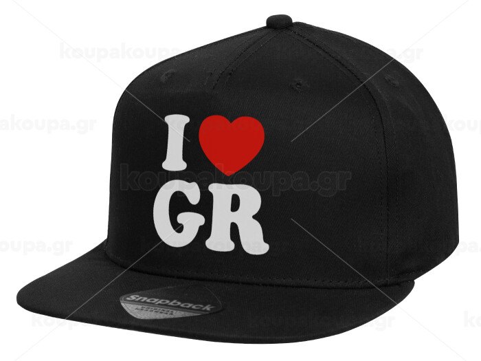 I Love GR, Καπέλο παιδικό Flat Snapback, Μαύρο (100% ΒΑΜΒΑΚΕΡΟ, ΠΑΙΔΙΚΟ, UNISEX, ONE SIZE)