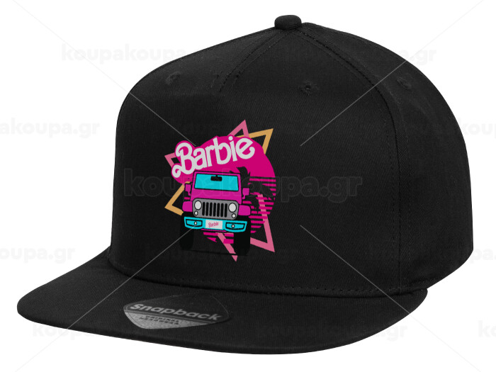 Barbie car, Καπέλο παιδικό Flat Snapback, Μαύρο (100% ΒΑΜΒΑΚΕΡΟ, ΠΑΙΔΙΚΟ, UNISEX, ONE SIZE)