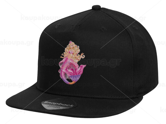 Barbie γοργόνα μπλε, Καπέλο παιδικό Flat Snapback, Μαύρο (100% ΒΑΜΒΑΚΕΡΟ, ΠΑΙΔΙΚΟ, UNISEX, ONE SIZE)