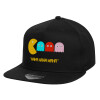 Pacman waka waka waka, Καπέλο παιδικό Flat Snapback, Μαύρο (100% ΒΑΜΒΑΚΕΡΟ, ΠΑΙΔΙΚΟ, UNISEX, ONE SIZE)