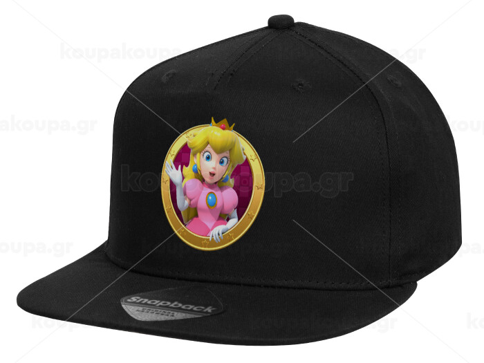 Princess Peach Toadstool, Καπέλο παιδικό Flat Snapback, Μαύρο (100% ΒΑΜΒΑΚΕΡΟ, ΠΑΙΔΙΚΟ, UNISEX, ONE SIZE)