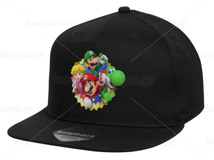 Super mario and Friends, Καπέλο παιδικό Flat Snapback, Μαύρο (100% ΒΑΜΒΑΚΕΡΟ, ΠΑΙΔΙΚΟ, UNISEX, ONE SIZE)