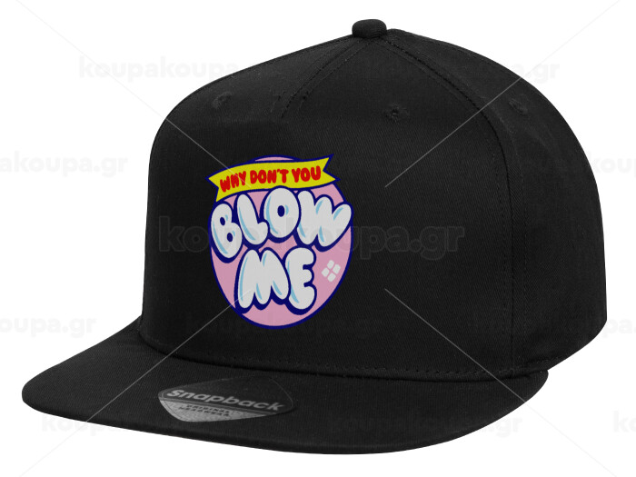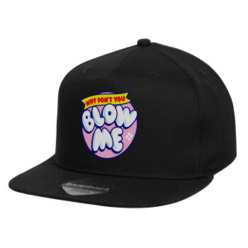 Why Don't You Blow Me Funny, Καπέλο παιδικό Flat Snapback, Μαύρο (100% ΒΑΜΒΑΚΕΡΟ, ΠΑΙΔΙΚΟ, UNISEX, ONE SIZE)