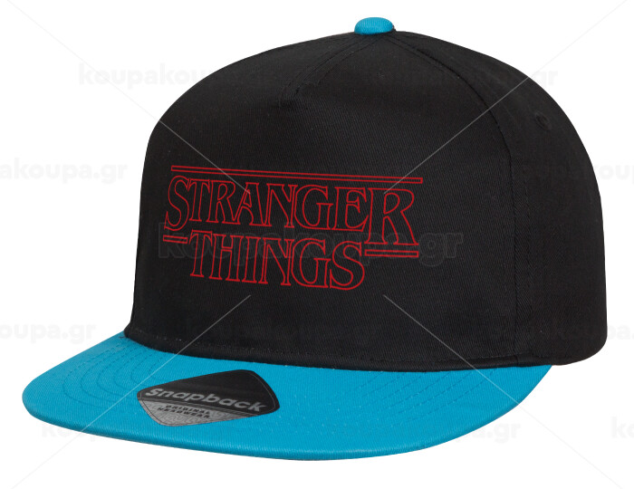Stranger Things Logo, Καπέλο παιδικό Flat Snapback, Μαύρο/Μπλε (100% ΒΑΜΒΑΚΕΡΟ, ΠΑΙΔΙΚΟ, UNISEX, ONE SIZE)