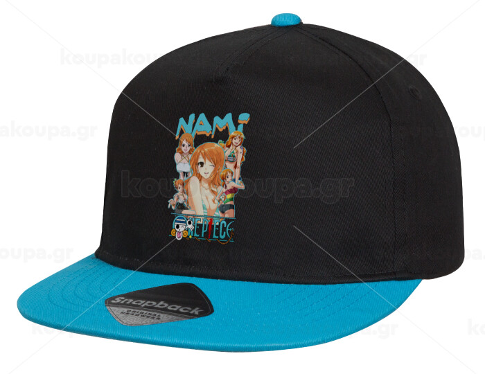 Nami One Piece, Καπέλο παιδικό Flat Snapback, Μαύρο/Μπλε (100% ΒΑΜΒΑΚΕΡΟ, ΠΑΙΔΙΚΟ, UNISEX, ONE SIZE)