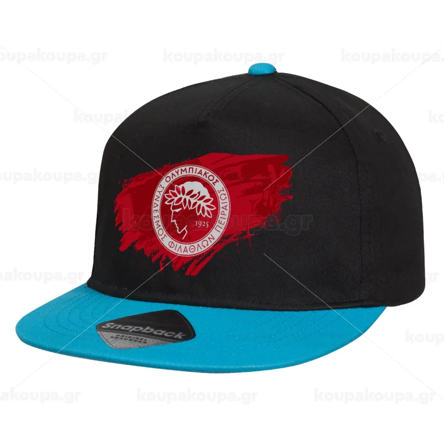 Olympiacos F.C., Καπέλο παιδικό Flat Snapback, Μαύρο/Μπλε (100% ΒΑΜΒΑΚΕΡΟ, ΠΑΙΔΙΚΟ, UNISEX, ONE SIZE)