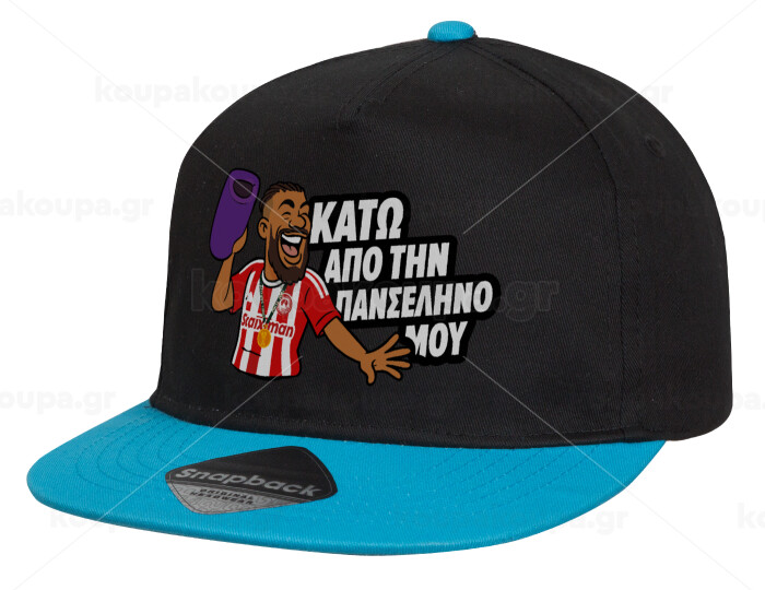 Ροντινέι, "ΚΑΤΩ ΑΠΟ ΤΗΝ ΠΑΝΣΕΛΗΝΟ ΜΟΥ!", Καπέλο παιδικό Flat Snapback, Μαύρο/Μπλε (100% ΒΑΜΒΑΚΕΡΟ, ΠΑΙΔΙΚΟ, UNISEX, ONE SIZE)