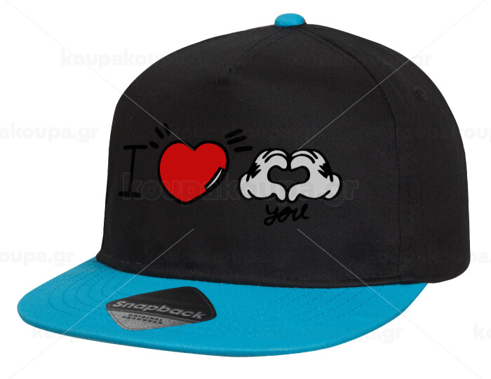 comics hands love, Καπέλο παιδικό Flat Snapback, Μαύρο/Μπλε (100% ΒΑΜΒΑΚΕΡΟ, ΠΑΙΔΙΚΟ, UNISEX, ONE SIZE)