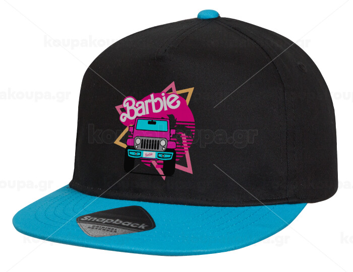 Barbie car, Καπέλο παιδικό Flat Snapback, Μαύρο/Μπλε (100% ΒΑΜΒΑΚΕΡΟ, ΠΑΙΔΙΚΟ, UNISEX, ONE SIZE)