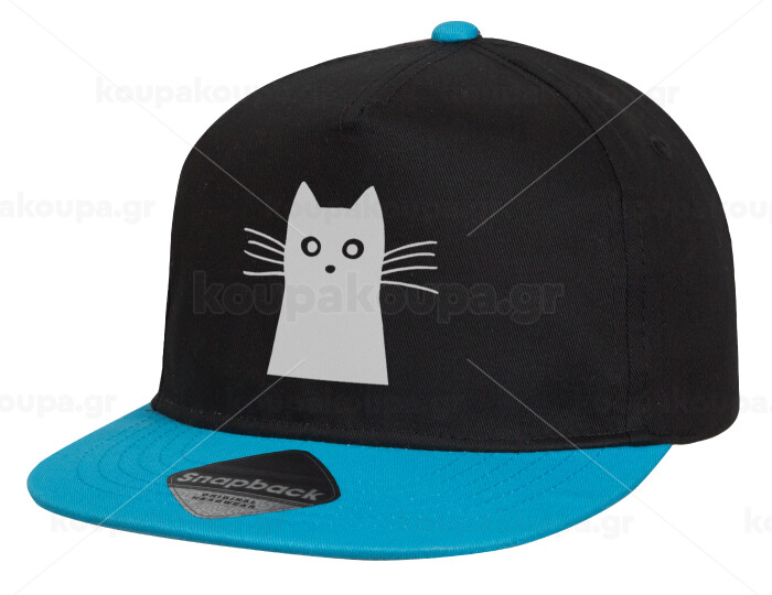 Μαύρη γάτα, Καπέλο παιδικό Flat Snapback, Μαύρο/Μπλε (100% ΒΑΜΒΑΚΕΡΟ, ΠΑΙΔΙΚΟ, UNISEX, ONE SIZE)