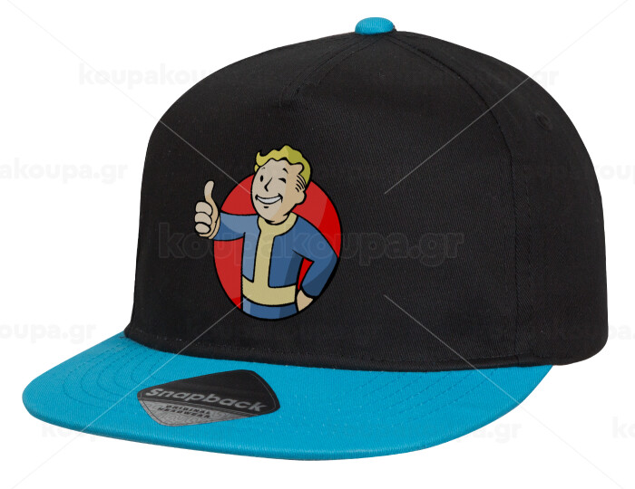 Fallout Vault Boy, Καπέλο παιδικό Flat Snapback, Μαύρο/Μπλε (100% ΒΑΜΒΑΚΕΡΟ, ΠΑΙΔΙΚΟ, UNISEX, ONE SIZE)