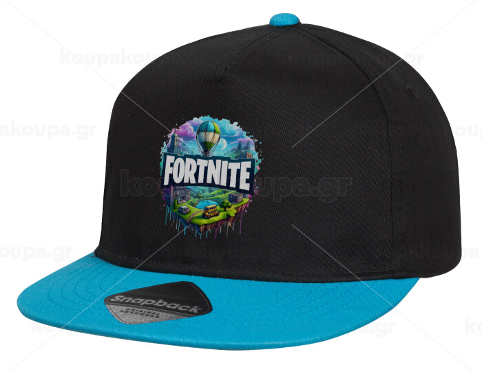 Fortnite land, Καπέλο παιδικό Flat Snapback, Μαύρο/Μπλε (100% ΒΑΜΒΑΚΕΡΟ, ΠΑΙΔΙΚΟ, UNISEX, ONE SIZE)
