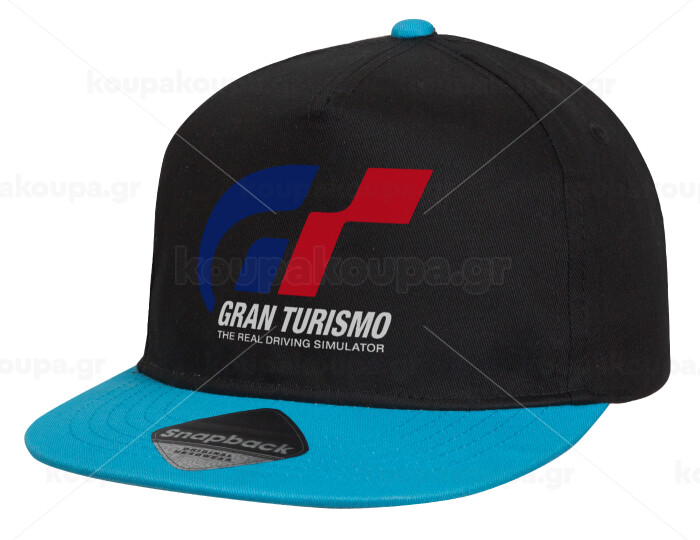 gran turismo, Καπέλο παιδικό Flat Snapback, Μαύρο/Μπλε (100% ΒΑΜΒΑΚΕΡΟ, ΠΑΙΔΙΚΟ, UNISEX, ONE SIZE)