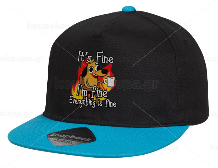 It's Fine I'm Fine Everything Is Fine, Καπέλο παιδικό Flat Snapback, Μαύρο/Μπλε (100% ΒΑΜΒΑΚΕΡΟ, ΠΑΙΔΙΚΟ, UNISEX, ONE SIZE)