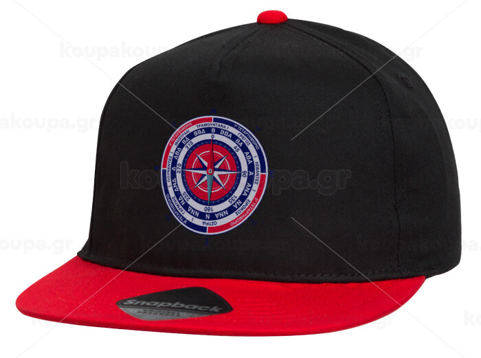 Ανεμολόγιο χάρτης πυξίδα ναυτικού, Καπέλο παιδικό Flat Snapback, Μαύρο/Κόκκινο (100% ΒΑΜΒΑΚΕΡΟ, ΠΑΙΔΙΚΟ, UNISEX, ONE SIZE)
