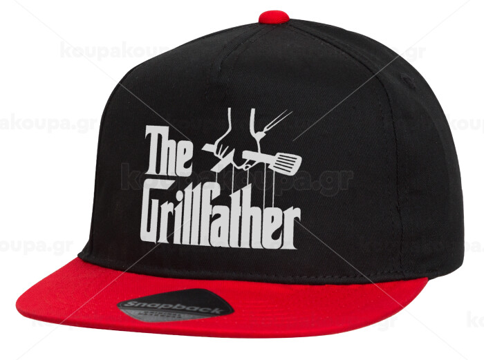 The Grill Father, Καπέλο παιδικό Flat Snapback, Μαύρο/Κόκκινο (100% ΒΑΜΒΑΚΕΡΟ, ΠΑΙΔΙΚΟ, UNISEX, ONE SIZE)