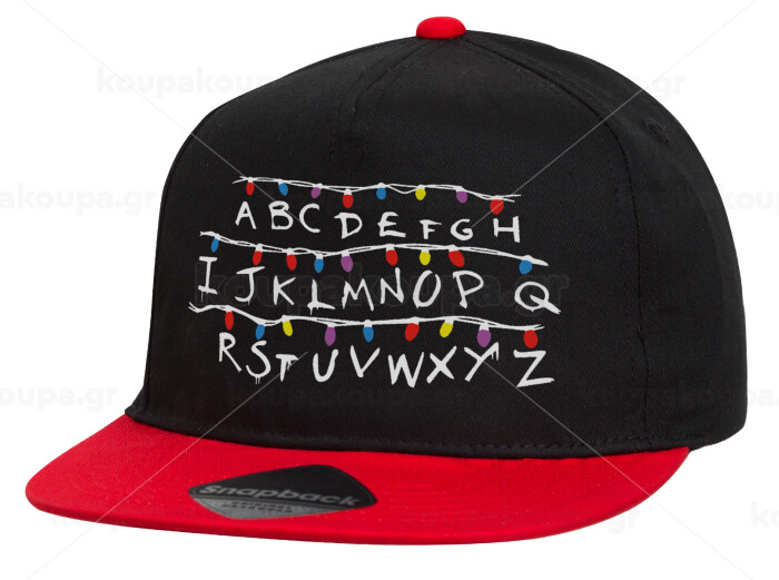 Stranger Things ABC, Καπέλο παιδικό Flat Snapback, Μαύρο/Κόκκινο (100% ΒΑΜΒΑΚΕΡΟ, ΠΑΙΔΙΚΟ, UNISEX, ONE SIZE)