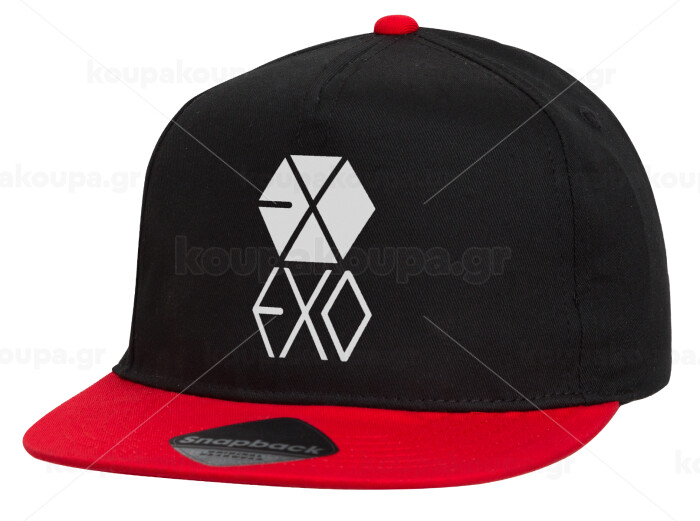 EXO Band korea, Καπέλο παιδικό Flat Snapback, Μαύρο/Κόκκινο (100% ΒΑΜΒΑΚΕΡΟ, ΠΑΙΔΙΚΟ, UNISEX, ONE SIZE)