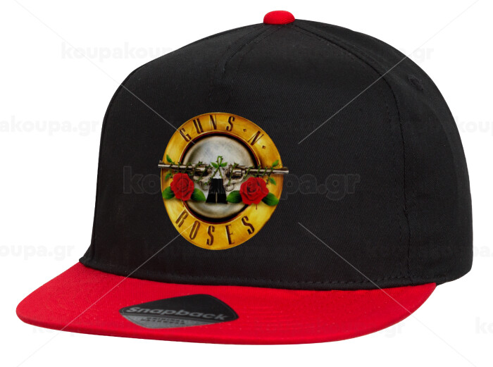 Guns N' Roses, Καπέλο παιδικό Flat Snapback, Μαύρο/Κόκκινο (100% ΒΑΜΒΑΚΕΡΟ, ΠΑΙΔΙΚΟ, UNISEX, ONE SIZE)