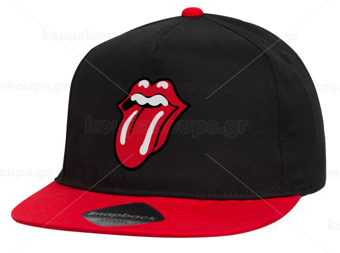 Rolling Stones Kiss, Καπέλο παιδικό Flat Snapback, Μαύρο/Κόκκινο (100% ΒΑΜΒΑΚΕΡΟ, ΠΑΙΔΙΚΟ, UNISEX, ONE SIZE)