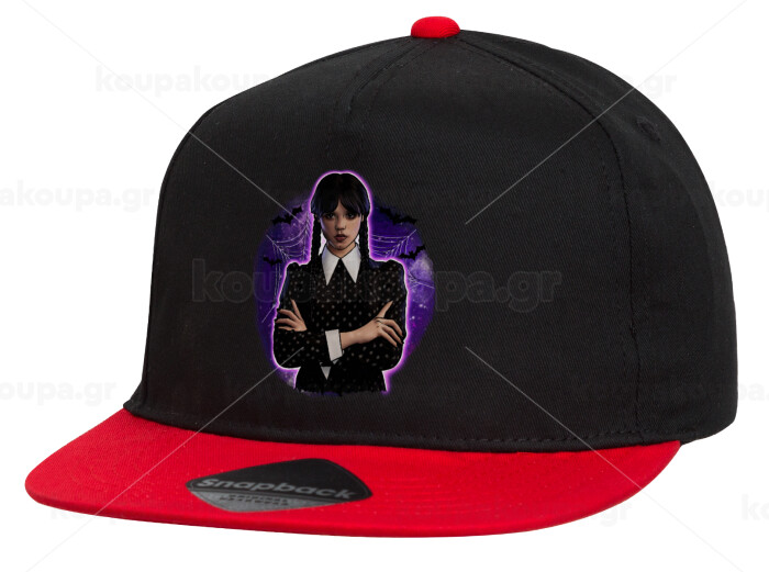 Wednesday moonlight, Καπέλο παιδικό Flat Snapback, Μαύρο/Κόκκινο (100% ΒΑΜΒΑΚΕΡΟ, ΠΑΙΔΙΚΟ, UNISEX, ONE SIZE)