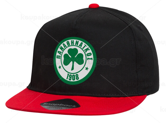 ΠΑΟ Παναθηναϊκός, Καπέλο παιδικό Flat Snapback, Μαύρο/Κόκκινο (100% ΒΑΜΒΑΚΕΡΟ, ΠΑΙΔΙΚΟ, UNISEX, ONE SIZE)