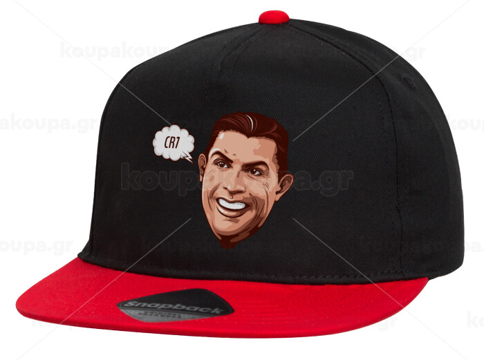 Cristiano Ronaldo, Καπέλο παιδικό Flat Snapback, Μαύρο/Κόκκινο (100% ΒΑΜΒΑΚΕΡΟ, ΠΑΙΔΙΚΟ, UNISEX, ONE SIZE)