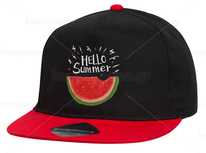 Summer Watermelon, Καπέλο παιδικό Flat Snapback, Μαύρο/Κόκκινο (100% ΒΑΜΒΑΚΕΡΟ, ΠΑΙΔΙΚΟ, UNISEX, ONE SIZE)