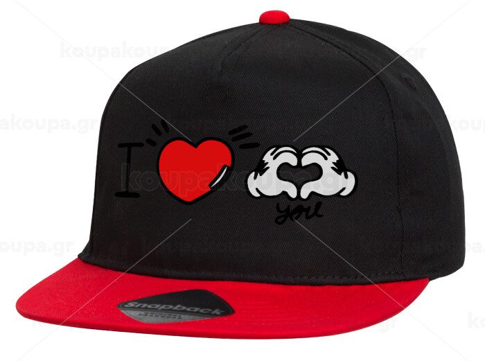 comics hands love, Καπέλο παιδικό Flat Snapback, Μαύρο/Κόκκινο (100% ΒΑΜΒΑΚΕΡΟ, ΠΑΙΔΙΚΟ, UNISEX, ONE SIZE)