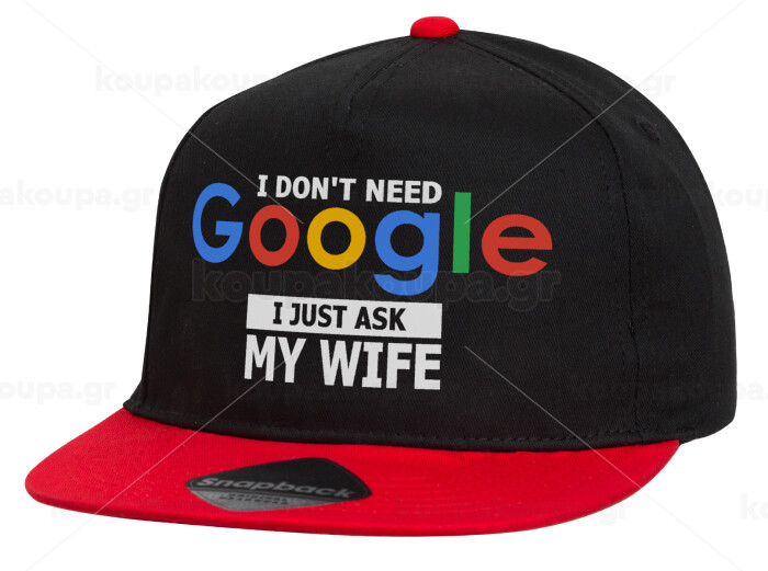 I don't need Google, just ask my WIFE, Καπέλο παιδικό Flat Snapback, Μαύρο/Κόκκινο (100% ΒΑΜΒΑΚΕΡΟ, ΠΑΙΔΙΚΟ, UNISEX, ONE SIZE)