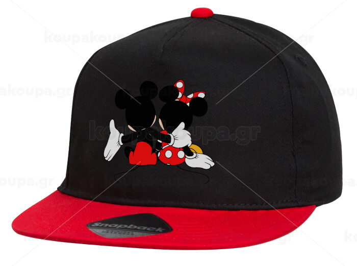 mickey and minnie hags, Καπέλο παιδικό Flat Snapback, Μαύρο/Κόκκινο (100% ΒΑΜΒΑΚΕΡΟ, ΠΑΙΔΙΚΟ, UNISEX, ONE SIZE)