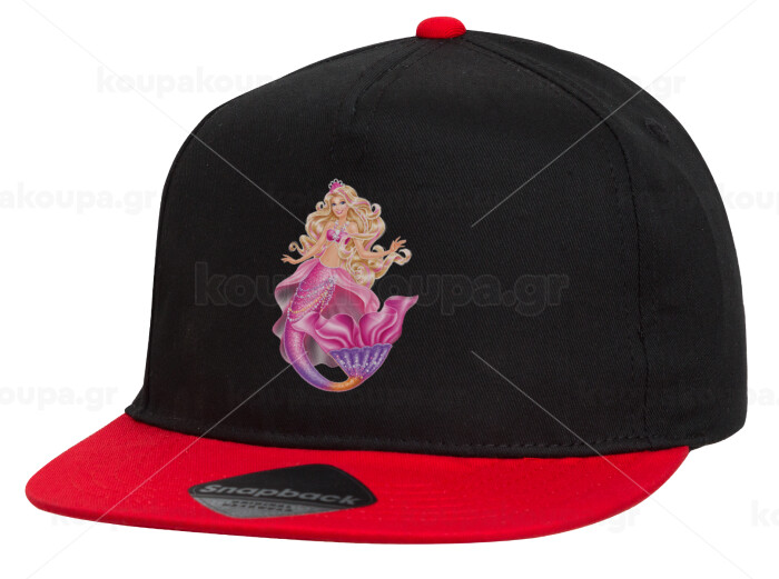 Barbie γοργόνα , Καπέλο παιδικό Flat Snapback, Μαύρο/Κόκκινο (100% ΒΑΜΒΑΚΕΡΟ, ΠΑΙΔΙΚΟ, UNISEX, ONE SIZE)
