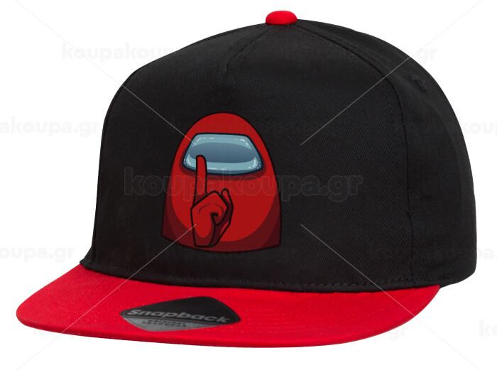 Among US, Καπέλο παιδικό Flat Snapback, Μαύρο/Κόκκινο (100% ΒΑΜΒΑΚΕΡΟ, ΠΑΙΔΙΚΟ, UNISEX, ONE SIZE)