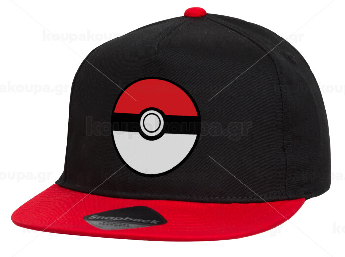 Pokemon ball, Καπέλο παιδικό Flat Snapback, Μαύρο/Κόκκινο (100% ΒΑΜΒΑΚΕΡΟ, ΠΑΙΔΙΚΟ, UNISEX, ONE SIZE)