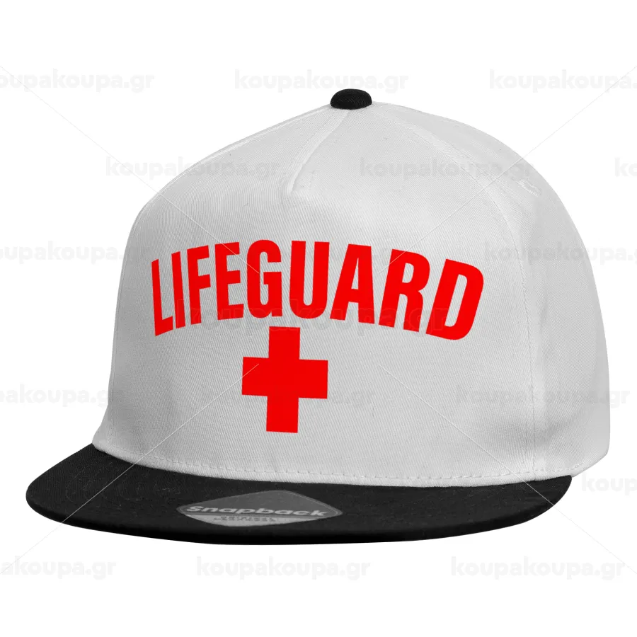 Lifeguard, Καπέλο παιδικό Flat Snapback, Λευκό (100% ΒΑΜΒΑΚΕΡΟ, ΠΑΙΔΙΚΟ, UNISEX, ONE SIZE)