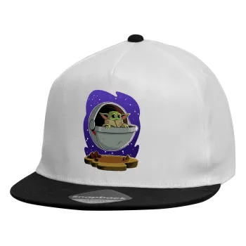 Baby Yoda mandalorian, Καπέλο παιδικό Flat Snapback, Λευκό (100% ΒΑΜΒΑΚΕΡΟ, ΠΑΙΔΙΚΟ, UNISEX, ONE SIZE)