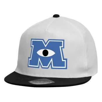 Monster inc, Καπέλο παιδικό Flat Snapback, Λευκό (100% ΒΑΜΒΑΚΕΡΟ, ΠΑΙΔΙΚΟ, UNISEX, ONE SIZE)