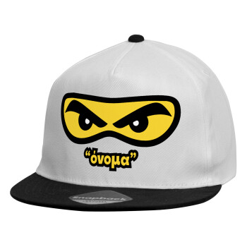 Ninja Eyes με όνομα, Καπέλο παιδικό Flat Snapback, Λευκό (100% ΒΑΜΒΑΚΕΡΟ, ΠΑΙΔΙΚΟ, UNISEX, ONE SIZE)