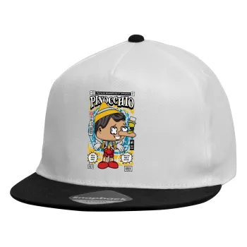 Pinocchio, Καπέλο παιδικό Flat Snapback, Λευκό (100% ΒΑΜΒΑΚΕΡΟ, ΠΑΙΔΙΚΟ, UNISEX, ONE SIZE)