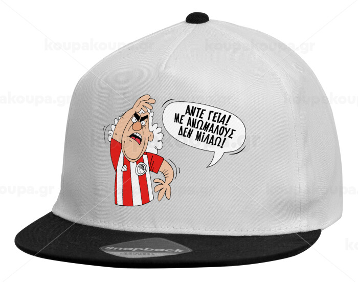 Τάκης, Άντε γεια, με ανώμαλους δεν μιλάω!, Καπέλο παιδικό Flat Snapback, Λευκό (100% ΒΑΜΒΑΚΕΡΟ, ΠΑΙΔΙΚΟ, UNISEX, ONE SIZE)
