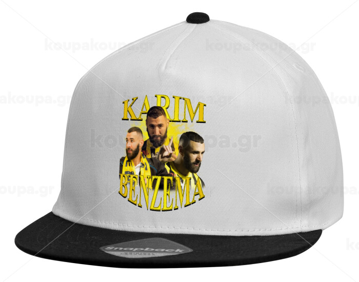 Karim Benzema, Καπέλο παιδικό Flat Snapback, Λευκό (100% ΒΑΜΒΑΚΕΡΟ, ΠΑΙΔΙΚΟ, UNISEX, ONE SIZE)