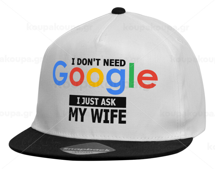 I don't need Google, just ask my WIFE, Καπέλο παιδικό Flat Snapback, Λευκό (100% ΒΑΜΒΑΚΕΡΟ, ΠΑΙΔΙΚΟ, UNISEX, ONE SIZE)